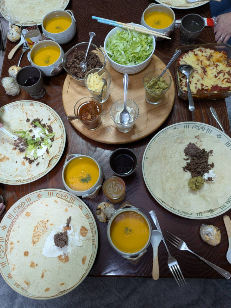 先日、タコスパーティーをしました。友人が用意してくださいました。異国の料理というのは、面白いですね。特に食べ物は実際に口に入れ、体の中に取り込みますから、リアリティーの最も強いものかも知れません。