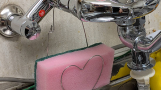 妻に頼まれて、スポンジをぶら下げる所を作ってほしいとのことで、昔取った杵柄ということで、針金細工で作ってみました。どうでしょうか? 高校の文化祭の時にネームを作って売ったことのあったものの延長線上で、大学に入ってからは色々なものを作りました...